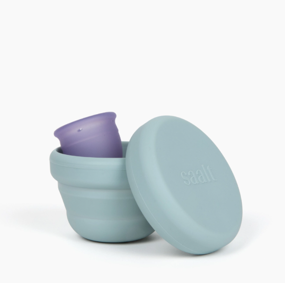 Sanitize your cup or disc on the go The Saalt Compact Sanitizer allows you to sanitize your menstrual cup or disc anywhere. Just boil water, pour, wait 3 minutes, and go. Or fill with water, add your cup/disc, and place directly in the microwave for about 3 minutes (or whenever the water boils). Ta-da! Easy, peasy, best-period-ever…sy.